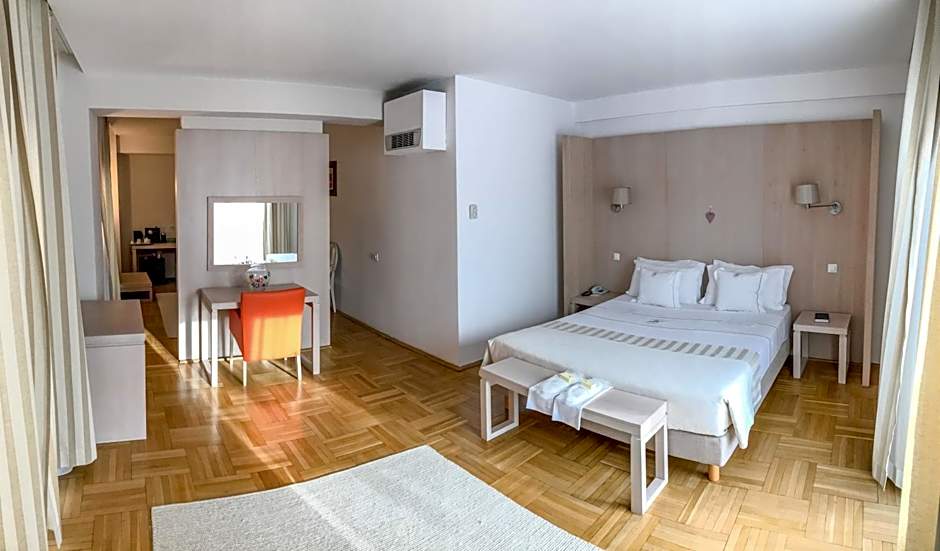 A large double bedroom with seating area and dressing room. Also comes with free Wi-Fi and a mini-bar.